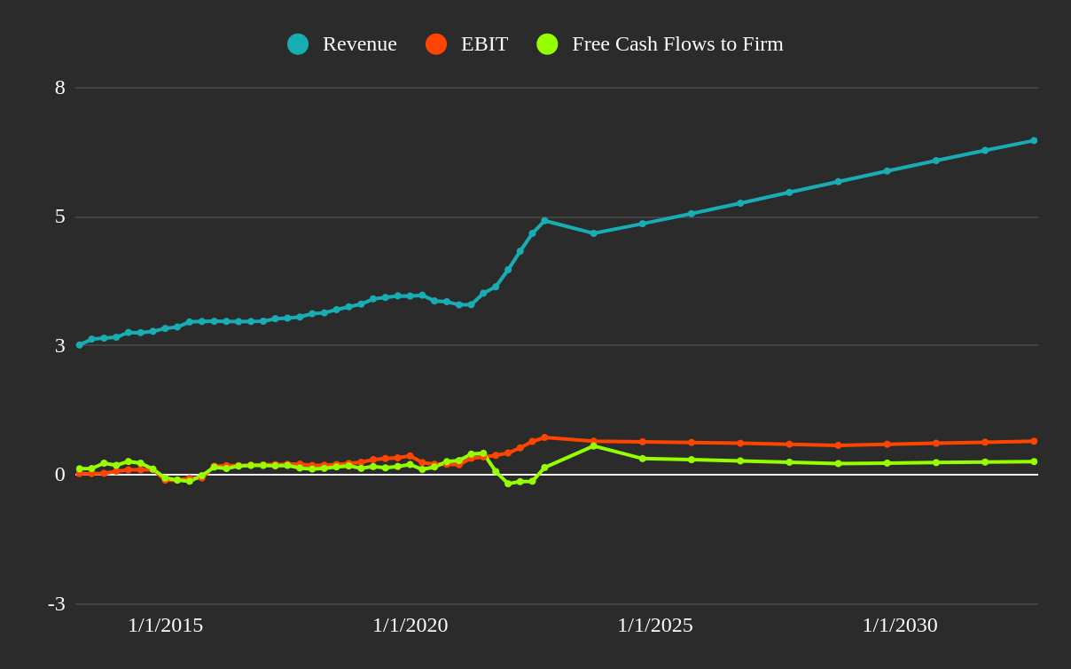 In the chart below, we can see Wienerberger’s historical fundamentals (on the left side), and our estimates of the company’s future capacity (right half).