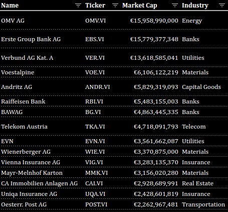 The 15 largest stocks in Austria have a combined market cap of €93 billion, which is a relatively small market, but may be an overlooked niche that investors can take advantage of for this reason.